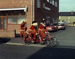 Penultimate in a longer series than the first (double in length, in fact) was London to Brighton, not an episode often mentioned apart from griping it was one of the worst in the run. There were some funny moments, but the problem was the trio were hardly in it, as the plot had them undertaking a charity marathon from London to Brighton that is extended around the world. While doing so, they wore toothpaste tube costumes of the brand sponsoring them, meaning it could be anybody we see bouncing around on space hoppers. The bulk of the comedy was given over to Freddie Jones (the chairman reluctant to give up his cash), Jonathan Cecil (his grovelling minion) and Gilly McIver as the grinning but silent secretary. They weren't bad at all, but this was supposed to be The Goodies.