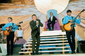 If you are new to this sixties relic, here's the plot: Kenneth Connor, most famed from the Carry On series and latterly, wartime sitcom Allo, Allo! was our hero, a hapless alien diplomat named Wilco Roger who is sent to Earth to settle a dispute that would be familiar from the era's music charts. The denizens of Beatland like rock 'n' roll, or its UK 1964 equivalent, and those in Balladisle prefer, well, ballads crooned by terribly nice young ladies and gentlemen; neither can see eye to eye, and will give no quarter to allowing their rivals the upper hand. Wilco meets with the Godlike Mr A&R (Frank Thornton of Are You Being Served?) to see if he can arrange a contest that will bring about a truce.