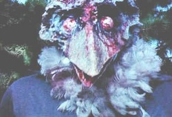 Sooner or later someone had to combine the two above trains of thought, creating a turkey horror movie--literally...sort of. Production/direction partners Steve Hawkes and Brad Ginter crossed a bird with a blade-toting pothead and got a...well, you'll see. Like that isn't cool enough, Hawkes and Ginter also included a chain-smoking narrator who's obviously reading a script on the table he is seated behind!