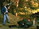Although Sleepaway Camp 3 contains most of the same elements as its predecessor (and was actually filmed back-to-back with it), it’s severely lacking one thing: Gore. Not that I’m saying it isn’t gory, because it is – it’s just not gory enough for a movie featuring a guy getting his arms pulled off with a 4x4 during an outdoor bondage session! This Anchor Bay disc features a selection of deleted scenes, all gorier versions of the movie’s murders, and it’s a great pity that these weren’t cut back into the movie. You know, when you see a fat old hag buried up to her neck in rotting garbage before having her head run over with a Flymo, you want the genuine article. To make up for SC3’s watered down violence, Angela has taken to using Commando style one-liners – you know, “Dead serious”, “Lost her head”, that kind of stuff. Some of them aren’t even funny… Well, they are a bit but only because they’re not.