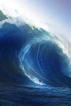 A surfer is towed by jetski onto the tip of a rising wave, the camera pulls back and the wave begins to swell. As your eyes re-adjust to the change in scale, the camera pulls back further, and within seconds the wave has risen to a monstrous 70 ft – a thousand tons of moving liquid arching over the surfer’s head. Accelerating up to 55 mph, he flies through the arc of rushing water in a race to pull clear before it collapses upon him. This is the beginning of Billabong Odyssey, an epic journey that brought together the greatest surfers in the world with just one goal… to surf the biggest wave in history, and live.