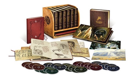 Ultimate Collector’s Edition - Includes 30 discs featuring The Hobbit: An Unexpected Journey, The Hobbit: The Desolation of Smaug, The Hobbit: The Battle of the Five Armies, The Lord of the Rings: The Fellowship of the Ring, The Lord of the Rings: The Two Towers, and The Lord of the Rings: The Return of the King, in their extended edition forms. housed in six faux leather books and a collectible Hobbit-style solid wood shelf, design-approved by Peter Jackson himself. In addition, all previously released bonus content from both the theatrical and extended edition releases will be included in the collection. Also included in the collection are premium collectibles including an exclusive 100-page sketch-style book with replica The Red Book of Westmarch, and two original reproductions of watercolor paintings by acclaimed conceptual artists Alan Lee and John Howe. Extended Editions on Blu-ray.