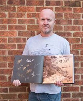 Neil Ellis, 43 from Elstree, Hertfordshire, began collecting the autographs when he landed his dream job in the costume and props department at Lucasfilm, working on the first instalment of the Star Wars sequel trilogy, The Force Awakens. At the same time he created a spectacular Millennium Falcon themed bronze-cast to display the book.