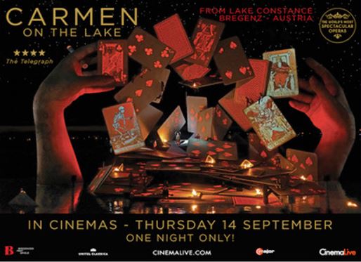 Event Cinema specialists CinemaLive are pleased to announce they are working in partnership with C-Major Entertainment to bring George Bizet's Carmen on the Lake (Bregenz, Austria) to close to 300 cinemas in the UK on Thursday 14 September.