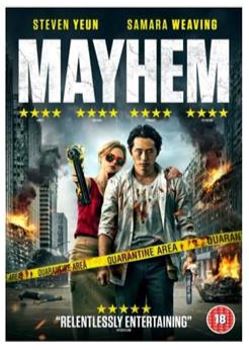 Fresh from raucous, sold-out festival screenings across the globe, Kaleidoscope and SHUDDER are excited to announce the UK digital and DVD release of the stylish and savage MAYHEM - the brilliantly executed action-horror-comedy which sticks two fingers up at office politics and then proceeds to rip out the charred heart of humdrum 9 to 5 society today.