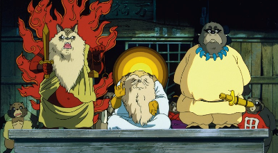 "Pom Poko" is about the tanuki (raccoon dogs) of Tama Hills who find their fun-loving community under attack when their quiet woodlands are threatened by encroaching developers looking to create still more houses and shopping malls. Desperate to survive, the tanuki band together and learn the ancient art of transformation, shape-shifting into a comical variety of humans and spirits as they undertake a last-ditch plan to scare away the humans and save their home, in this deeply affecting, funny and heartfelt look at what it means to live in the modern world. Trailer's above.