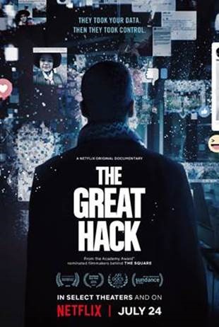 Data has surpassed oil as the world's most valuable asset. It's being weaponized to wage cultural and political warfare. People everywhere are in a battle for control of our most intimate personal details. From award-winning filmmakers Karim Amer and Jehane Noujaim, THE GREAT HACK uncovers the dark world of data exploitation with astounding access to the personal journeys of key players on different sides of the explosive Cambridge Analytica/Facebook data scandal.