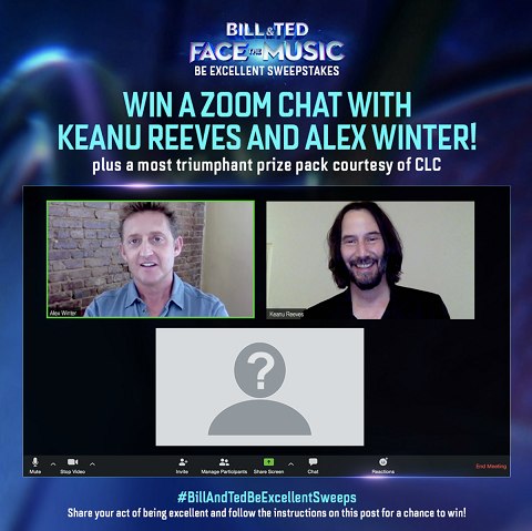 Orion Pictures is offering a special chance at the ultimate Bill & Ted giveaway - a "Be Excellent" Sweepstakes! Between September 16-23, submit your most bodacious story of an act of excellence via the film's official Facebook (@BillAndTed3) or Twitter (@BillAndTed3) pages using the hashtag #BillAndTedBeExcellentSweeps, plus like and share or retweet the announcement, to enter for a chance to win a once in a lifetime Zoom chat with none other than Bill and Ted themselves, Keanu Reeves and Alex Winter! Winners will also receive a prize pack consisting of most triumphant BILL & TED FACE THE MUSIC merch courtesy of CLC and Dark Horse Comics.