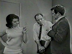 The hottie literally vanishes into thin air and her hunk catches a slug, a convenient plot device to put him in a hospital, wherein Howie’s incredible experience is recounted to swinging Daily Sentinel reporter Jim Crandel.