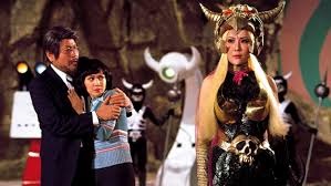 The result was Super Infra-Man (1975), eighty-four minutes of non-stop kung fu, superhero thrills, laser battles, exploding aliens and rampaging prehistoric monsters, shot in glorious Shawscope. A devastating earthquake unleashes an invading army of shape-shifting beasties led by Princess Dragon-Mom, a whip-wielding, mini-skirted, blonde vixen who also sports a rather chic Viking helmet. World domination is what she’s after, but Hong Kong will do for starters, so her monster hordes proceed to stomp it into dust.