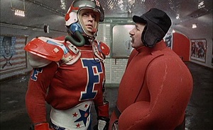 Delphine Seyrig played his French sidekick Marie-Madeleine in a spangly leotard who is apparently pleased to see him and even nurses him through a crisis of confidence with cornflakes when the world is not listening to the sense spoken by the U.S.A. - according to their leaders. Klein's background in design meant the film was a riot of colour and bizarre imagery, often including actual riots, with Philippe Noiret the Soviet counterpart Moujik Man dressed in an ungainly red foam suit as the chief antagonist, and Red China Man a huge inflatable dragon breathing out smoke, but what do you know? It transpires that the fight for liberation on America's terms is more complicated than Mr Freedom ever realised, to the extent that the entire concept of "freedom" which appeared to be so concrete and solid resembles something less reliable and more nebulous than anyone can get a handle on. Imagine if Superman had a nervous breakdown and you had some idea of what it was like to watch this, which in spite of its throw anything at the wall to see what stuck attitude did manage to land a few well-aimed jabs at the establishment, though what it changed would be up for debate. That said, Beck was obviously a fan since he based his Sexx Laws video around the film, with Jack Black dressed as Mr. Freedom.