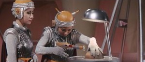 In fact, they place the boy-brat into a head-holder, shave his noggin, fire up a drilling device and come this close to sucking on some cerebellum when...the Manor On Movies No Spoilers Policy prevents me from revealing what happens next, but it turns a gleeful scifi romp into a heartbreaking horror outing. (Hint: no child character was harmed in the making of this motion picture.)