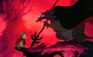Mrs Brisby had lost her husband, after all, and all the way through Bluth and his team piled on imagery that, while not explicitly Gothic, was often close to horror movie visuals. That the ultimate enemy proved to be NIMH itself was particularly ironic as those were initials that stood for The National Institute for Mental Health which we learn in flashback have been conducting vivisection on animals which were set free by Jonathan, more evidence that this project had an uncertain grasp on what was wholly suitable for a young audience. To add to the woes, Mrs Brisby's house will soon be destroyed by the tractor at the nearby farm for it is harvest time, and she must persuade the local rats, who were given increased intelligence by the experimentation, to help her or it is strongly implied all of her children will die. This weight of the world was reminiscent of the fifties classic Night of the Hunter in tone, a curious choice in a work full of them.