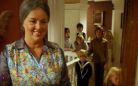 For whatever strange reason, Hammer never really got on with werewolves, their only true attempt at trying something different with the genre being Oliver Reed's star-making turn in Curse of the Werewolf in the early sixties, but not one they followed up with one of their franchises as with vampires or Frankenstein. Belatedly, however, they included the horror staple in this series, for the episode entitled Children of the Full Moon which seemingly acknowledged the lupine menace had become a cliché hence they would kick off the story with another one: the couple's car breaking down on a quiet country road and stranding them, forcing them to seek a telephone at a local farmhouse. The twist was that the owner was Diana Dors, all frumped down as a jovially sinister brood mother of a bunch of creepy kids.