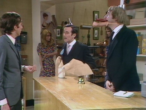 You might have thought with one member down The Pythons would be overstretched, especially in filling out the roles they were required to play - as ever, they took on multiple duties in each programme - but on the evidence of the second instalment they were managing very well. Certainly with Michael Ellis, as this was named, there was an almost hectic degree of character changes as Eric Idle played the man who visits a London department store to buy a pet ant: the fact that the sanest character in the story was also possibly out of his mind was part of the joke. But everyone he meets beats him for nuttiness, from the shop assistants who insist they were waiting for Ellis, then won't explain who he is, to the poetry reading he is directed to when he discovers his ant only has four legs and is therefore faulty. It was one of the weirdest half hours ever broadcast by the BBC.
