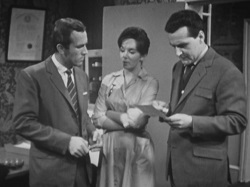 We then, once Johnny Dankworth's original theme had finished playing, settle on the offices of Hendry’s David Keel, a doctor who offers to patch up the fugitive who has just stumbled in, allowed access by the series' first female regular, Carol Wilson, played by Ingrid Hafner who is often forgotten in the show's history, probably because she was a rather stock sidekick character. She only appears in the first act of this episode, anyway, as soon Keel and Steed have jaunted off to that fairground on the trail of the injured man (Anthony Bate), who drove away in Steed's car when the agent was chasing his enormous dog (!). The rest of the plot saw our intrepid duo trace the man's mother (Doris Rogers), who runs a stall at the establishment.