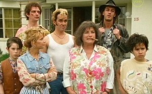 Dick Maas is best known to film critics for horror/thrillers life 1983's Der Lift or 1988's Amsterdammed. But in his native Netherlands, his main cultural legacy is the Flodder series. Starting with Flodder (1986), it began as a visually bright, breezy and gleefully effluent comedy. Trying to find a Western counterpart is difficult. The plotline - a skanky working-class family are moved from their home when it is discovered it is built on a toxic dump, so Ma (Nelly Frijda), peroxide greaser-styled elder son Johnny (Amsterdammed's Huub Stapel), trampy eldest daughter Kees (Tatjana Simic), idiotic second son, also named Kees (Rene van 't Hof), plus younger kids Toet and Henkie, Grandad and a dog move in to a larger house in a richer district as part of a social experiment, watched over by incompetent social worker Sjakie (Lou Landre) - is basically The Beverly Hillbillies, although with a working-class urban family rather than a rural family (a closer comparison being RTE sitcom Upwardly Mobile). But the family resemble the Boswells from Carla Lane's BBC sitcom Bread, which also started in 1986, down to the tough matriarch, the eldest son being a partiarchal blond greaser, the trampy daughter and the senile grandad. The film is a loud, almost too unattractive film shot in an attractive manner, and the comedy loses something in translation. Even the tank-attack climax is shot rather flat, compared to the action work that Maas had capably proved he could handle later on. But it was massively successful in Holland, and despite Maas and the cast's reluctance, in 1992 - they all returned (well, the two younger kids were absent) for Flodder in Amerika.