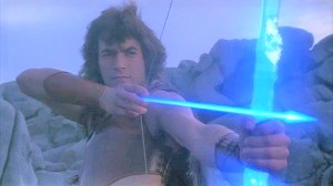 Yes, the same year Return of the Jedi landed in the world's cinemas, Chewie was getting up to all sorts in Conquest, and he even spoke English here, proving he could and all that roaring was just a put-on for his own private amusement. But the lunacy didn't stop there, as Mace and Ilias were beset by some of the grottiest monsters seen outside of a Space: 1999 episode, including Fulci indulging his apparent predilection for seeing his cast caked in mud of various thicknesses. The quest narrative of Greek myth was adhered to as far as "one damn thing after another" went, featuring squeaky, cobwebby creature men who were dispatched with a magic bow and arrow that saved on physical arrow effects.