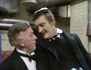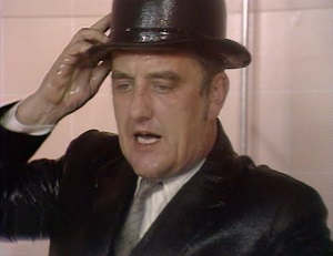 The next episode was 22nd September, and it's worth mentioning if you liked it when comedy shows messed around with their company logos, in this Cribbins was seen rowing a boat past the end credits and sinking in the water in the Thames brand. Before all that, the centrepiece skit was the ballroom dancing one, takeoffs on the BBC's popular Come Dancing being a go-to sketch for many comedy shows, and our hero played a miner who was late to the show so did not have time to change, leaving the dancers covered in coal dust. One of the highlights was quickly becoming the poetry corner, where Bernard was pelted with fruit and veg as he recited.
