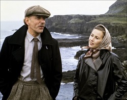 The location picked for Eye of the Needle was Mull, one of the Hebrides' largest islands though in this depicted as a bleak, barely populated and windswept isle, which has become the home for a couple somehow estranged but living in the same cottage with a toddler son. They were Kate Nelligan, the accomplished Canadian actress much seen in British productions of this era thanks to her knack with the accent, and Christopher Cazenove, who was the crippled and bitter husband, so sour in his demeanour that he sends his wife into the arms of The Needle when the spy washes in on the shore after being shipwrecked in his increasingly desperate bid to reach the submarine.