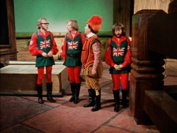 They were given a Christmas special in 1973, which amounted to no more than an extended episode, around three quarters of an hour instead of the usual thirty minutes or so, but what an episode it was, perhaps second only to Kitten Kong in the widely recalled stakes. This was The Goodies and the Beanstalk, a shot on film fairy tale told in their inimitable fashion, and one of the funniest endeavours they ever crafted as they find themselves down on their luck and are forced to sell their trandem for a can of beans. On planting one, a 5,000 foot long beanstalk appears, and when they climb it in an It's a Knockout contest, they find golden eggs and a giant (Alfie Bass) who is not all he's cracked up to be. Always imaginative, but this festive season evidently brought out their best.
