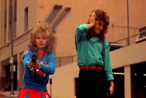 Now the problems have been ironed out, it's possible to see Night of the Comet legitimately and those nostalgic feelings are well and truly validated: how more eighties can a movie be that starts with a man haggling over the price of a pair of deeley boppers? He wants them so he can look like a tit as the latest comet flies by the planet and everyone celebrates, but what nobody knows is that in The Day of the Triffids-style, being exposed to the, er, cosmic rays or whatever will reduce you to a fine red dust. Luckily for teenage sisters Catherine Mary Stewart and Kelli Maroney, they happened to be sheltered from the effects, the former because she was having a liaison with her deadbeat cinema projectionist boyfriend in the steel (for safety) booth.