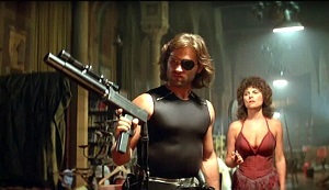 What Snake has to do is break into Manhattan Island, now walled off from the rest of a crime-ridden America, and rescue the President (Donald Pleasence) who has ejected from a hijacked Air Force One that had been diverted over New York by terrorists. The authorities, led by Lee Van Cleef (again with the Westerns referencing), take supercriminal Snake out of his sentence and order him to rescue the Leader of the Free World so he can attend a vital conference with the Soviet Union and China to avert global disaster in a Third World War. To add urgency, Snake has two small explosives implanted in his neck that will kill him should he not get back with the Pres in time.