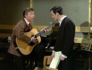 They're more or less The White and White Minstrels here. If you look at Steele's office, the walls are plastered with little posters of big names - Bobby Vee, Mrs Mills, Acker Bilk - who the producers of this could not gain access to, so what we get are some well-kent faces like pianist Russ Conway or Shane Fenton before be became Alvin Stardust a decade later, and a lot more obscure quality of singer; the legendary John Barry may appear as an arranger, but you're more likely to be wondering "Who?" at Marion Ryan (who gets two numbers), Johnny De Little or Dick Kallman. Yet they were all perfectly professional, and the main selling point.