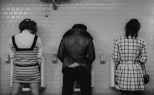 Peter became the most visible of this sort of person and went on to appear in many other films in a variety of roles. But Toshio had his revolution to depict, and went about it with a rat-a-tat editing style that could leave the viewer giddy or downright confused, even taking characters who played the kind of filmmakers and happening-instigators to appear in his jumble of a story, and mixing them with vox pops with actual gay boys, including Peter - he is interviewed about what he thinks about the ending a while before we actually see it, thus sabotaging the supposed shock. Yet there was humour as well: the three transvestites strutting around gives way to them answering the call of nature at urinals, or the cartoonish girl gang who pick a fight with them.