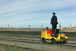 But interestingly on that triple disc set, among a wealth of extra features there is on disc three Keaton's final starring role, in a short lasting barely half an hour, called The Railrodder. This was made in the nineteen-sixties, when he was at the end of his career and enjoying an upswing in interest in his silent classics. The National Film Board of Canada were the instigators, and offered him the opportunity to act out some bits of business on a railroad set against some of the country's most lush and attractive scenery, much as he had been keen to do in his earlier, rural-set comedies. Better yet, there was a documentary made about the production at the same time.