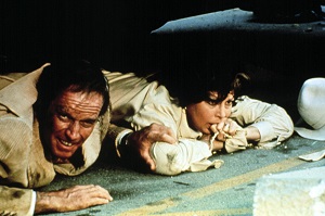 Therefore we were treated in the early stages to leading man Charlton Heston putting up with screen wife Ava Gardner sniping at him and almost fooling him that she had taken an overdose of pills before a pre-disaster tremor hits, or discussing nymphomania with his mistress Genevieve Bujold (a male nympho is a satyr - don't say you don't learn anything in movies). Also appearing were George Kennedy (more on him later) as a maverick cop, Marjoe Gortner as an unstable National Guardsman obsessed with a huge-afroed Victoria Principal, Richard Roundtree trying to outdo Evel Knievel, and Lorne Green as Gardner's father (yeah, right) who happens to be Cheston’s boss. The effects when they arrived were impressive by the standards of the day, though variable, but what was perhaps most interesting was that like The Towering Inferno, Earthquake posited that not everyone deserves to survive: not every life was sacred to Hollywood.