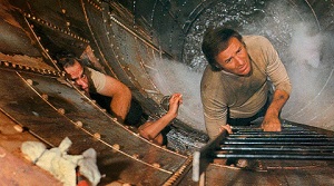 The titular Poseidon was the cruise liner on its last voyage (sound familiar?) which is subjected to what can lightly be described as choppy seas as it crosses the Atlantic Ocean. The Captain Leslie Nielsen warns the company man they should take the trip slowly, because hurrying the journey has put the ship in danger from capsizing in this rough weather, but as in many good seventies thrillers, the authorities are not to be trusted, an it's no surprise when the vessel is hit by a tidal wave and tips over: "Hell, upside down" as the advertising had it. This leaves the crew and passengers, who were enjoying a New Year's Eve celebration, to pick themselves off the ceiling and ponder their next move, in particular the progressive priest Gene Hackman who sees himself as quite the Moses, destined to lead the survivors out of the inverted ballroom and out through the hull, where rescue may or may not be awaiting them.
