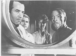 First and foremost, the spacecraft crew includes the golden-voiced Les Tremayne, junkfilm icon extraordinaire. You may not know Les by name, but he, Whit Bissell or WIlliam Schallert seemed to appear in every third sci-fi flick of the Fifties and Sixties. Nobody sounded more authoritative than Les Tremayne. And he wore a goatee back when it was actually cool (a l-o-n-g time ago.)