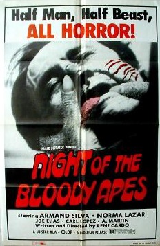 Well, DVD devotees, you'll find all of the above in Night Of The Bloody Apes (1968), inarguably the best stripping-female-wrestler-and-monster-and-naked-gals-and-gratuitous- surgery-footage movie ever committed to celluloid. And it will cost you less han one percent of that thousand bucks. (Leaving you plenty with which to Paypal my finder's fee.)