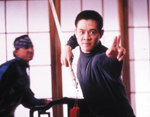 And why is it that English-speaking actors in Hong Kong movies are always so terrible? Even in top-class product like Once Upon a Time in China or Bullet in the Head the western actors are incredibly wooden, and it seems here that Hark has rounded up LA’s worst unemployed thespians to fill out his cast. Main villain Jerry Trimble is a decent fighter but he’s crippled by one of the ugliest mullets I’ve ever seen, whilst everyone else – from Anne Rickets playing the feisty blonde girl who looks after Uncle Tak to the trio of Chicano goons who follow Jet round everywhere – is just hopeless. Even Jet Li looks uncomfortable outside the action scenes, although he does have an easy chemistry with bilingual love interest Crystal Kwok. Only Yuen Wah, the veteran actor recently seen in Stephen Chow’s Kung Fu Hustle, brings any dignity to his role as Uncle Tak.