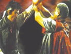 Needless to say, the special effects are just laughable. OAB hides his 'severed' arm under his tunic, which is so thin you can even see his fingers moving underneath, and the Indian guy has limbs made of wood (that don't bend). All the fight scenes are either slowed down to a crippled snail's pace or speeded up to resemble a moth on PCP let loose in Bulbs R Us, resulting in heavy brain damage to the viewer. Plus the print looks like it has been stored in a working concrete mixer filled with glass and bleach for the last 20-odd years, faded-to-fuck with endless scratches and jump-cuts.