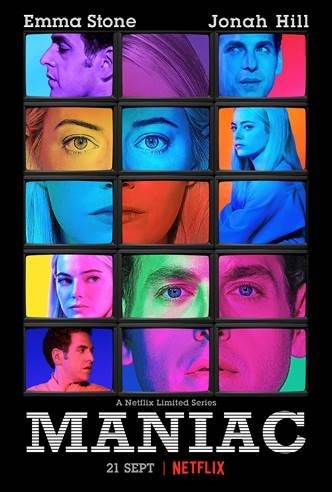 Set in a world somewhat like our world, in a time quite similar to our time, Maniac tells the stories of Annie Landsberg (Emma Stone) and Owen Milgrim (Jonah Hill), two strangers drawn to the late stages of a mysterious pharmaceutical trial, each for their own reasons. Annie's disaffected and aimless, fixated on broken relationships with her mother and her sister; Owen, the fifth son of wealthy New York industrialists, has struggled his whole life with a disputed diagnosis of schizophrenia. Neither of their lives have turned out quite right, and the promise of a new, radical kind of pharmaceutical treatment—a sequence of pills its inventor, Dr. James K. Mantleray (Justin Theroux), claims can repair anything about the mind, be it mental illness or heartbreak—draws them and ten other strangers to the facilities of Neberdine Pharmaceutical and Biotech for a three-day drug trial that will, they're assured, with no complications or side-effects whatsoever, solve all of their problems, permanently. Maniac also stars Trudie Styler, Jemima Kirke and Gabriel Byrne.
