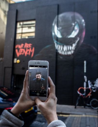 To celebrate the release of the blockbuster comic book hit VENOM on digital download, acclaimed graffiti artist INSA has unveiled an animated GIF-ITI mural of Marvel's legendary Lethal Protector on Redchurch Street in Shoreditch, London.