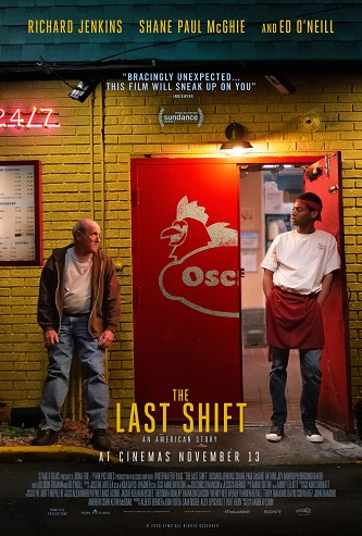 The Last Shift is an American story about two men struggling in the same town, while worlds apart. Stanley (Richard Jenkins), an aging fast-food worker, plans to call it quits after 38 years on the graveyard shift at Oscar's Chicken and Fish. His last weekend takes a turn while training his replacement, Jevon (Shane Paul McGhie), a talented but stalled young writer whose provocative politics keep landing him in trouble. These two who share little in common are brought together through circumstance. Stanley, a high school dropout who has watched life pass by his drive-through window, proudly details the nuances of the job. While Jevon, a columnist who's too smart to be flipping patties, contends their labour is being exploited. A flicker of comradery sparks during the long overnight hours in a quiet kitchen.