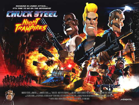 Now, blasting exclusively on to the big screen in CHUCK STEEL: NIGHT OF THE TRAMPIRES, his first full-length feature film, and a wholly British independent production made in Wales, Chuck is bigger, bolder and... ballsier!